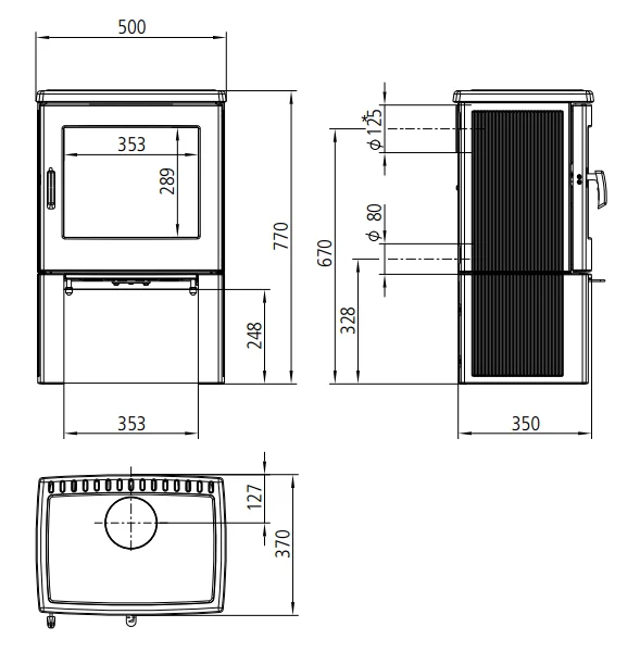 Kompaktní kvalitní litinová kamna od německého výrobce Leda vynikají masivní konstrukcí a zásobníkem na dřevo. Dokonalé spalování a pohodlné přikládání velkými dvířky zvyšuje komfort užívání. Povrchová úprava je černý matný lak. Nespornou výhodou je i možnost připojení přívodu vzduchu z exteriéru.