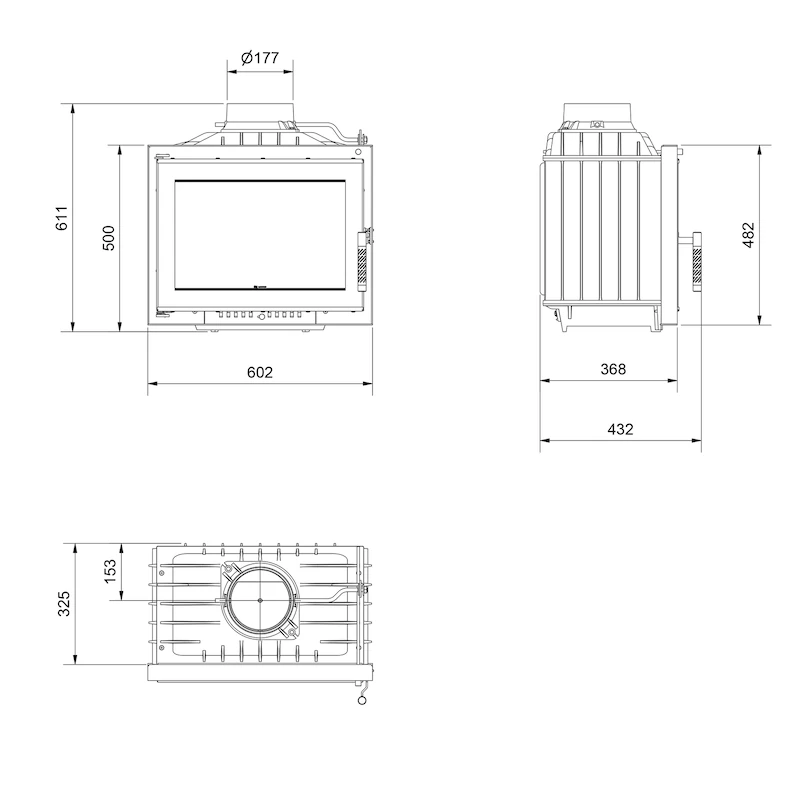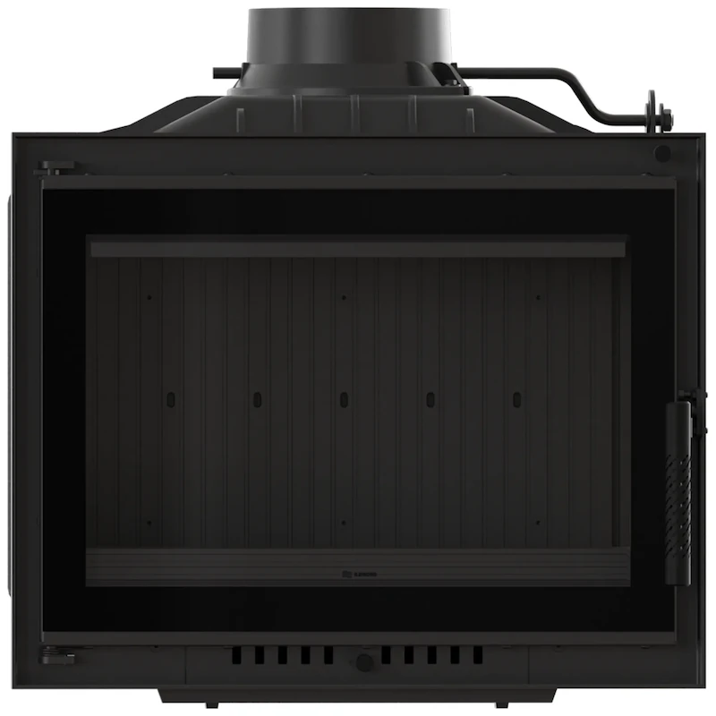 Litinová krbová vložka s designovým sklem vhodná pro vytápění větších obytných prostor nebo otevřených interiérů.