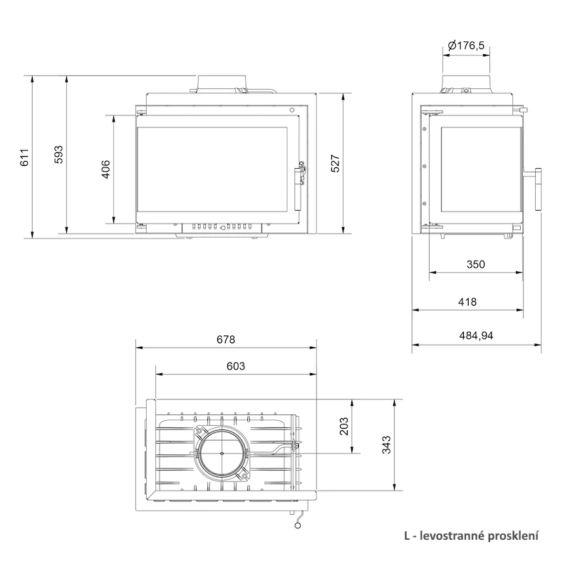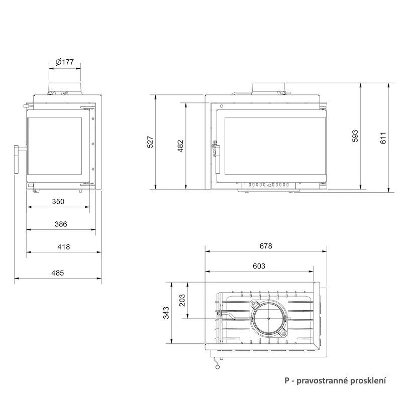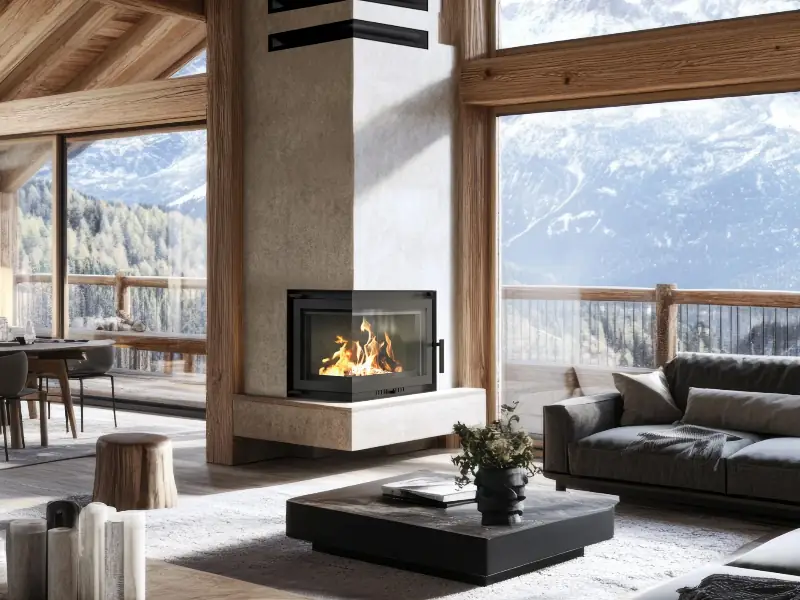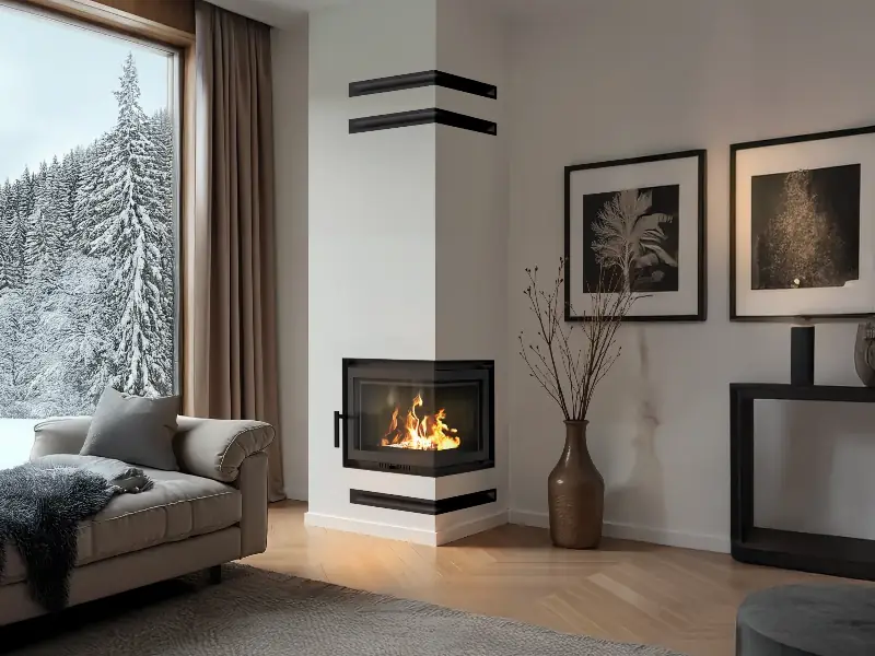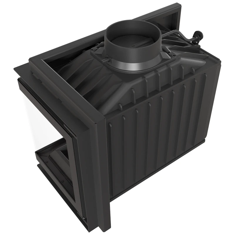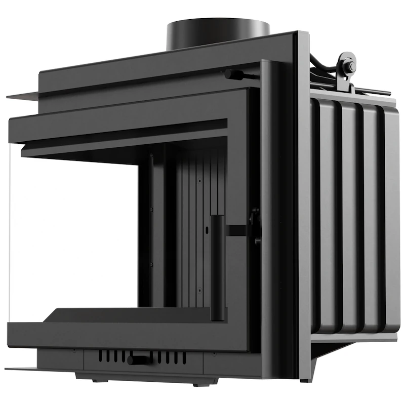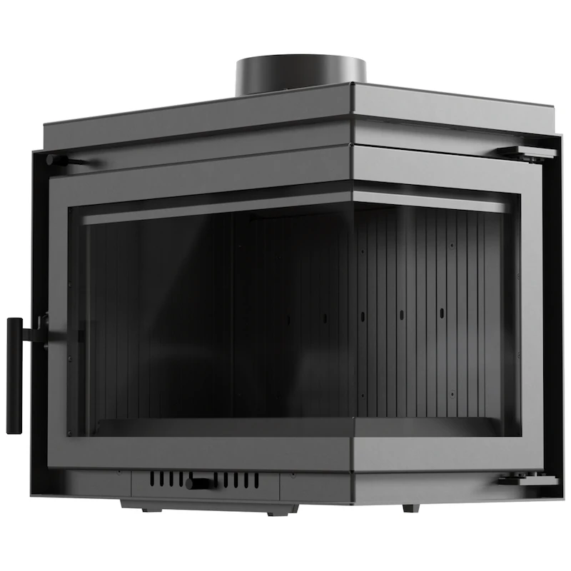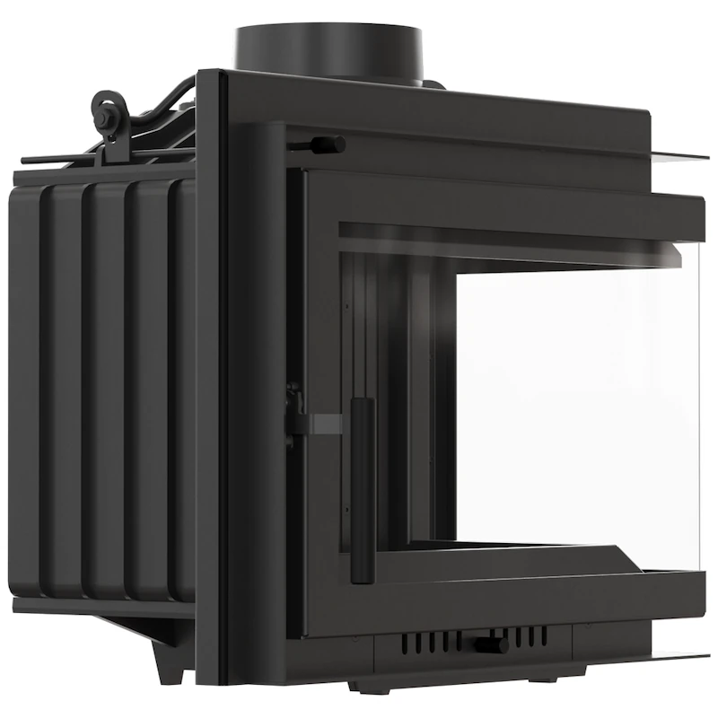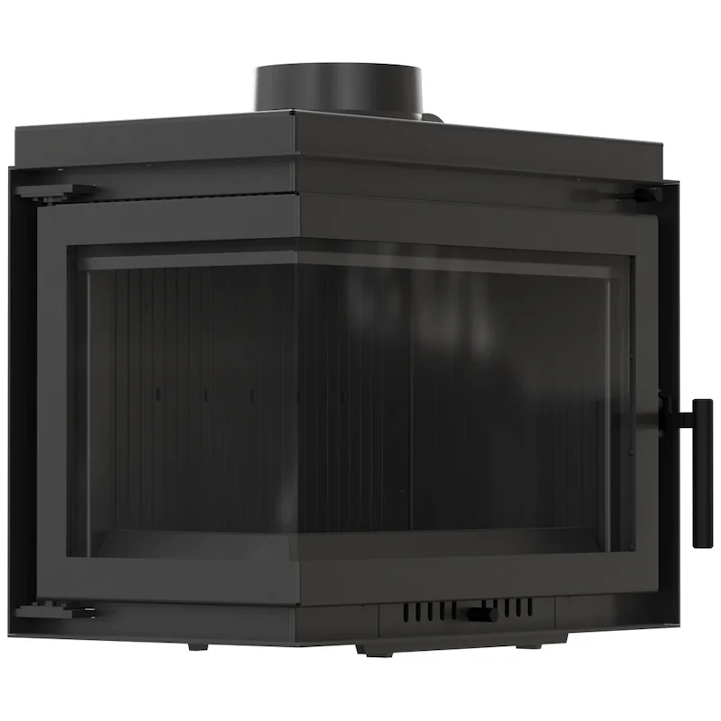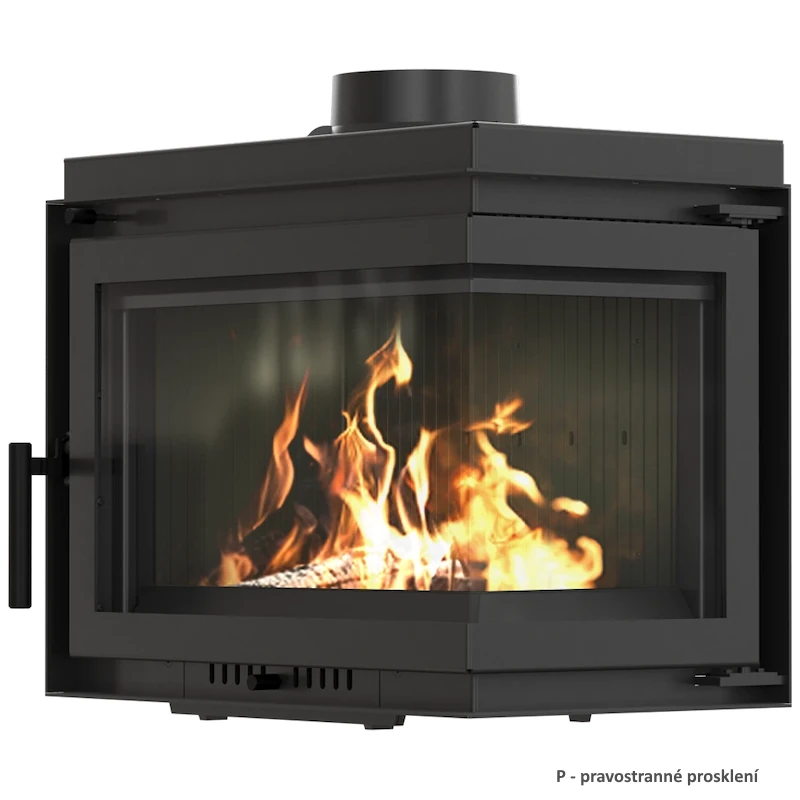Litinová krbová vložka rohová vhodná pro vytápění větších obytných prostor nebo otevřených interiérů.
