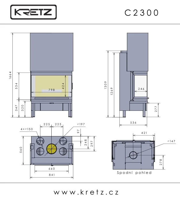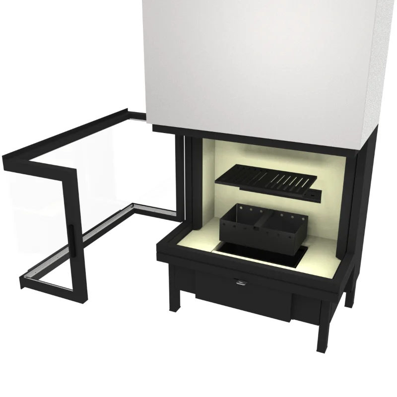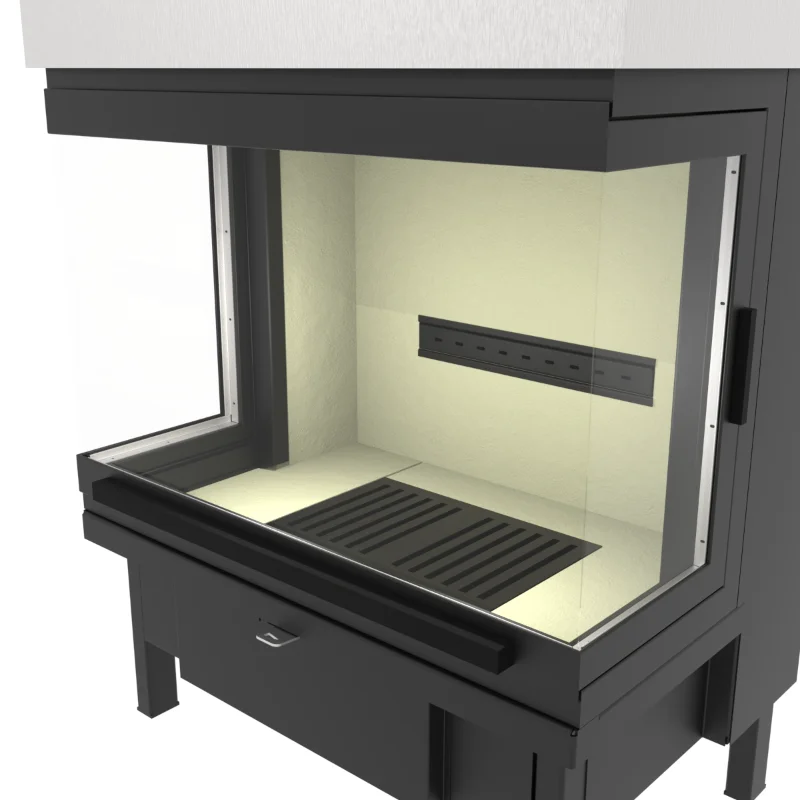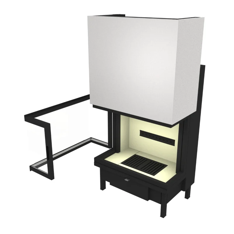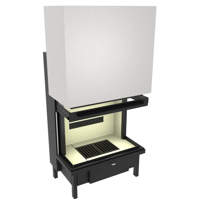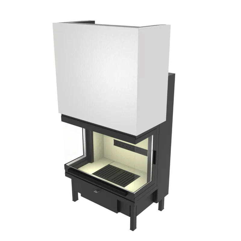 Ocelová dvouplášťová krbová vložka středních rozměrů. Velké žáruvzdorné keramické 4mm silné sklo, dveře mají čelní a boční prosklení. Otvírání kombinované do boku (klička dveří vpravo) a zvedací. Samočistící sklo - oplachování proudem sekundárního vzduchu. Nové modely s označením "C" mají popelník integrovaný uvnitř topeniště, vylepšené hodnoty spalování a topeniště vyložené šamotovými deskami. Nahoře má čtyři vývody průměr 150mm na odvod teplého vzduchu.