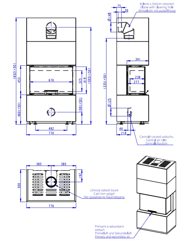 rozměry dveří topeniště (Výška | Šířka | Hloubka): 419 | 670 | 277 mm lehký chod výsuvných dveří se systémem pojezdu Silent lift