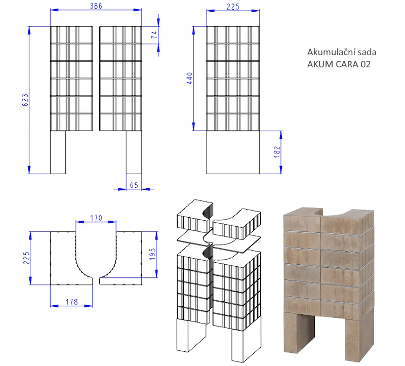 Designová akumulační krbová kamna s kamenným obkladem a s velkoplošným třístranným prosklením. Kamna jsou dvouplášťová a vydávají konvekční i sálavé teplo. Kamna lze doplnit o masu akumulačních prvků, kterou prodloužíte vyzařování tepla z krbu až na 5,5 hodin.