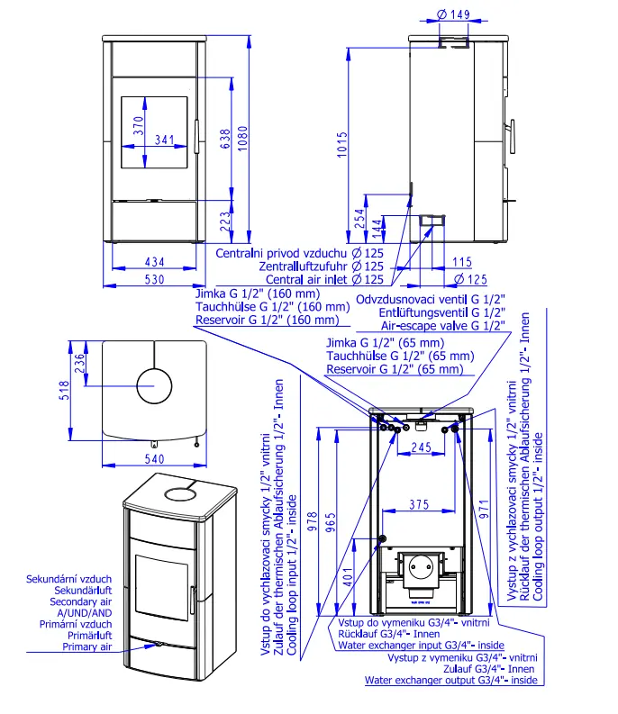 Ocelová dvouplášťová (konvekční) krbová kamna s teplovodním výměníkem pro ohřev topné vody. Jaký je rozdíl mezi sáláním a konvekcí ![]()