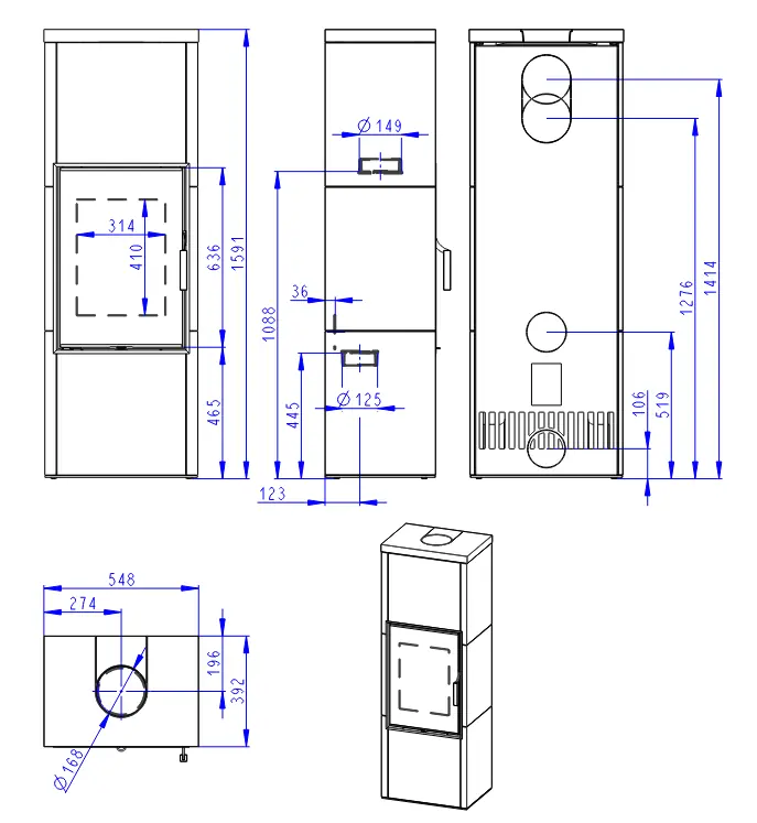 Dvouplášťová (konvekční) krbová kamna s rovnými dvířky a s keramickým opláštěním v několika barvách. Jaký je rozdíl mezi sáláním a konvekcí ![]()