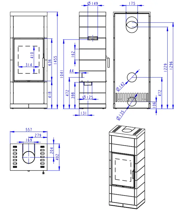 Dvouplášťová (konvekční) krbová kamna s rovnými dvířky a s keramickým opláštěním v několika barvách. Jaký je rozdíl mezi sáláním a konvekcí ![]()