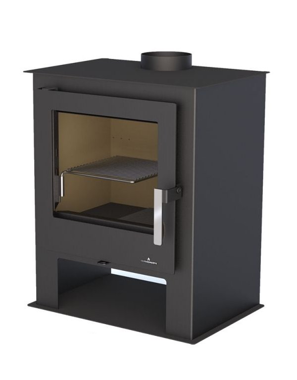 Sálavá krbová kamna vyrobena z kvalitní uhlíkové oceli v kombinaci s litinovými dvířky a litinovým roštem. Vysoce kvalitní kamna od španělského výrobce kamen a krbů Bronpi.
