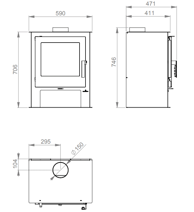 Rozměry topeniště (V x Š x H): 295 x 400 x 328 mm
