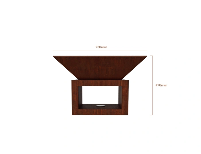 Klasický model VULCANUS Pro730b (grilovací plotna 730b x 730b mm) na sníženém podstavci je vhodný jako rodinné ohniště do zahrady. Hodí se však i do parků a na veřejná prostranství jako veřejné tábořiště.