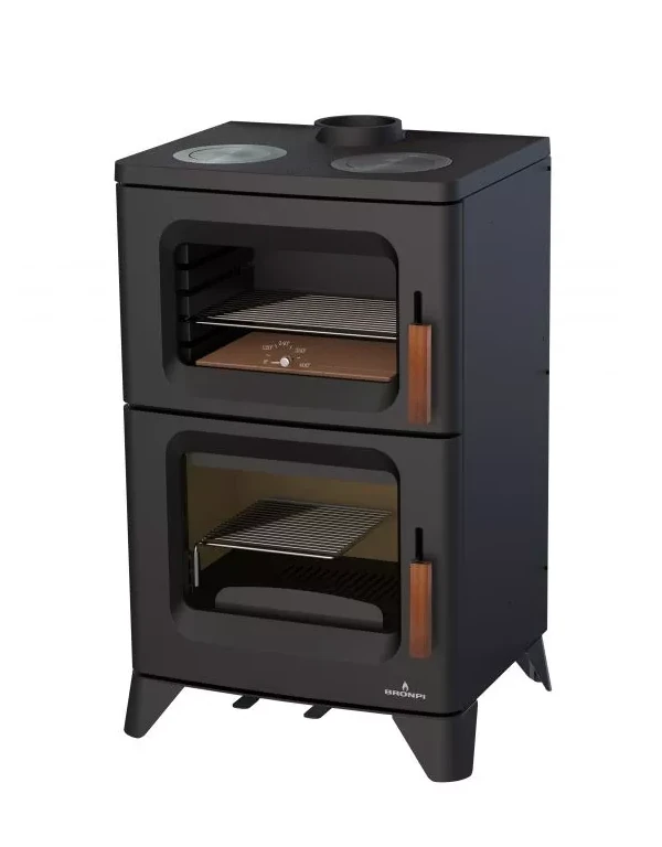 Sálavá vysoce kvalitní krbová kamna s troubou a dvěma varnými plotýnkami od španělského výrobce kamen a krbů Bronpi.