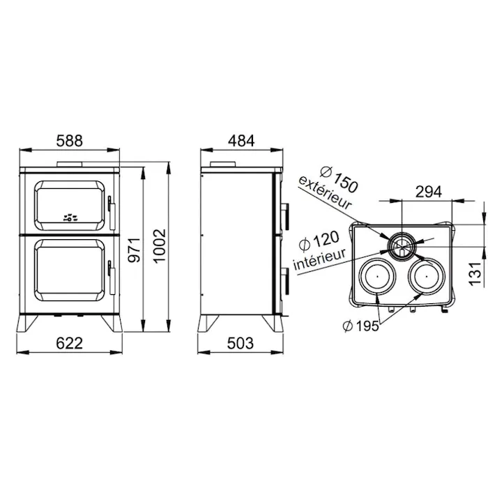 Velká trouba s teploměrem na pečení a ohřívání jídlaTrouba je ocelová, ve spodní části jsou žáruvzdorné tvarovky