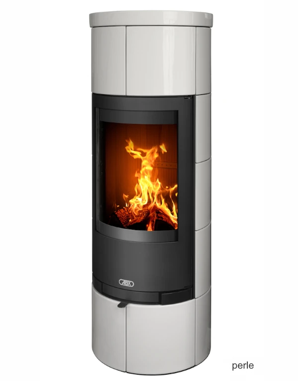 Dvouplášťová teplovzdušná (konvekční) kamna s kachlovým obkladem.