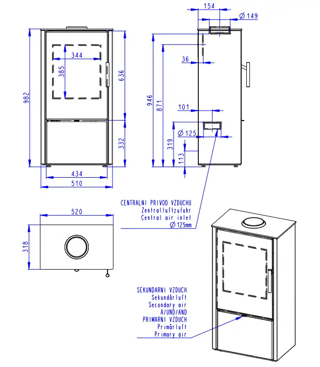 Dvouplášťová (konvekční) krbová kamna s celoskleněnými dvířky. Jaký je rozdíl mezi sáláním a konvekcí ![]()