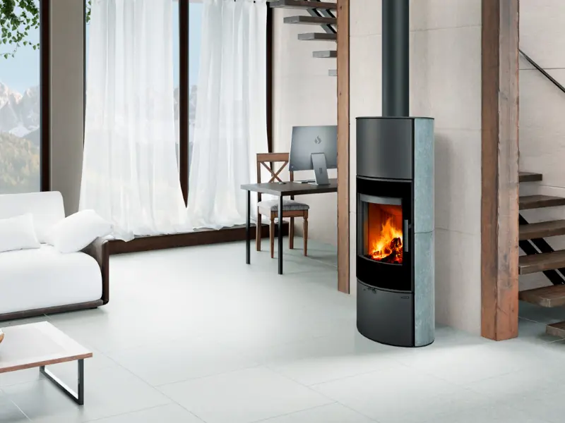 Dvouplášťová (konvekční) krbová kamna s celoskleněnými dvířky a s vysokou schopností sálat dodatečné teplo. Ocelové opláštění se serpentinem na bocích. Krbová kamna v prostoru nad spalovací komorou lze doplnit speciálními akumulačními tvarovkami - prstenci ROMOTOP. Touto "masou" akumulačních prstenců prodloužíte vyzařování tepla z kamen až na 5,5 hodiny. Jaký je rozdíl mezi sáláním a konvekcí ![]()