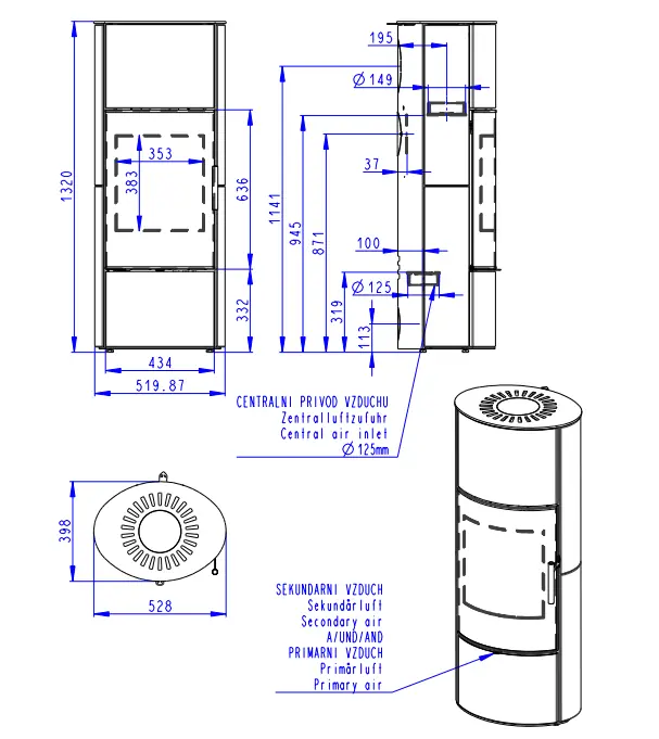 Dvouplášťová (konvekční) krbová kamna s celoskleněnými dvířky a s vysokou schopností sálat dodatečné teplo. Ocelové opláštění s keramikou na bocích. Krbová kamna v prostoru nad spalovací komorou lze doplnit speciálními akumulačními tvarovkami - prstenci ROMOTOP. Touto "masou" akumulačních prstenců prodloužíte vyzařování tepla z kamen až na 5,5 hodiny. Jaký je rozdíl mezi sáláním a konvekcí ![]()