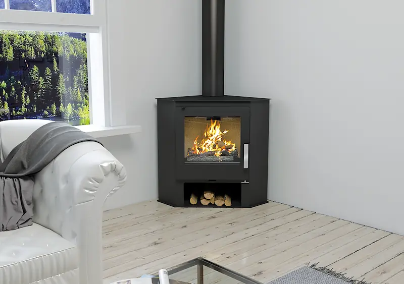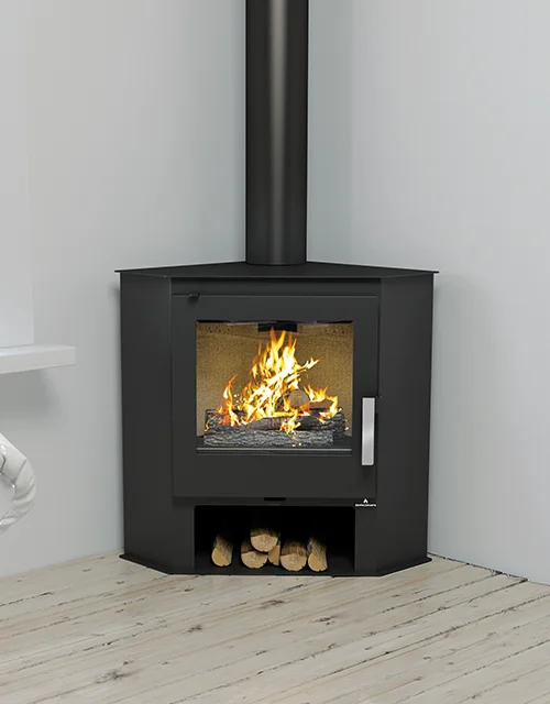 Sálavá rohová krbová kamna vyrobena z kvalitní uhlíkové oceli v kombinaci s litinovými dvířky a litinovým roštem. Vysoce kvalitní kamna od španělského výrobce kamen a krbů Bronpi.