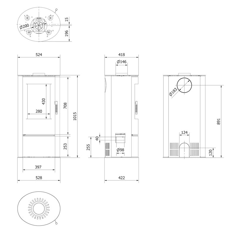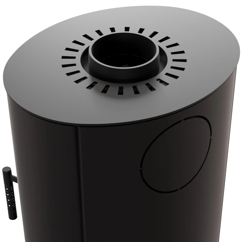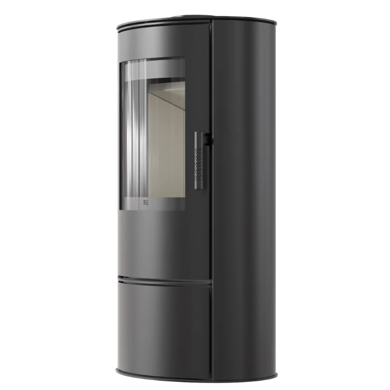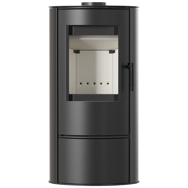 Ocelová dvouplášťová konvekční kamna. Krbová kamna s rovným žáruvzdorným sklem vhodná pro nízkoenergetické nebo dobře utěsněné domy s rekuperací.