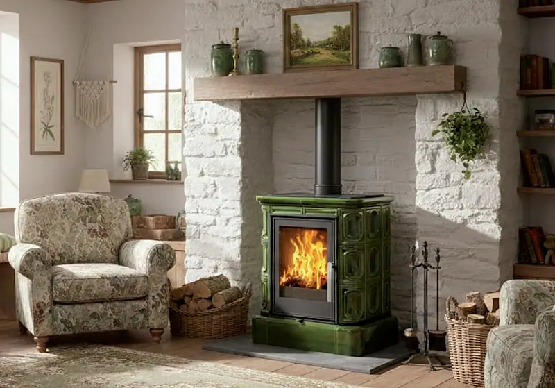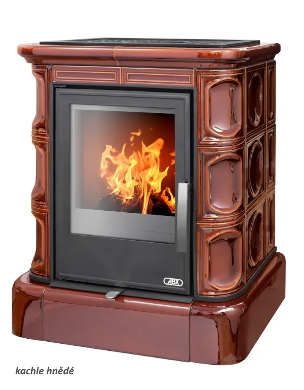 Kachlová dvouplášťová teplovzdušná (konvekční) kamna s teplovodním výměníkem 6,9kW.