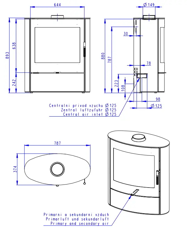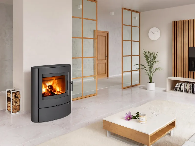 Dvouplášťová (konvekční) krbová kamna se zaobleným a rozměrově nadstandardním sklem. Ocelové opláštění v černé barvě. Jaký je rozdíl mezi sáláním a konvekcí ![]()