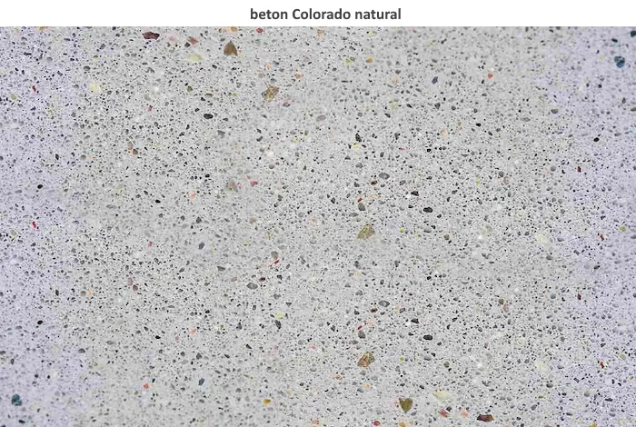 - obklad: beton Colorado natural (Speciální beton s probarveným povrchem a předvoskovaným a leštěným povrchem, který zvýrazňuje přirozené barevné variace písku. Colorado by se nemělo dále opracovávat ani natírat.)