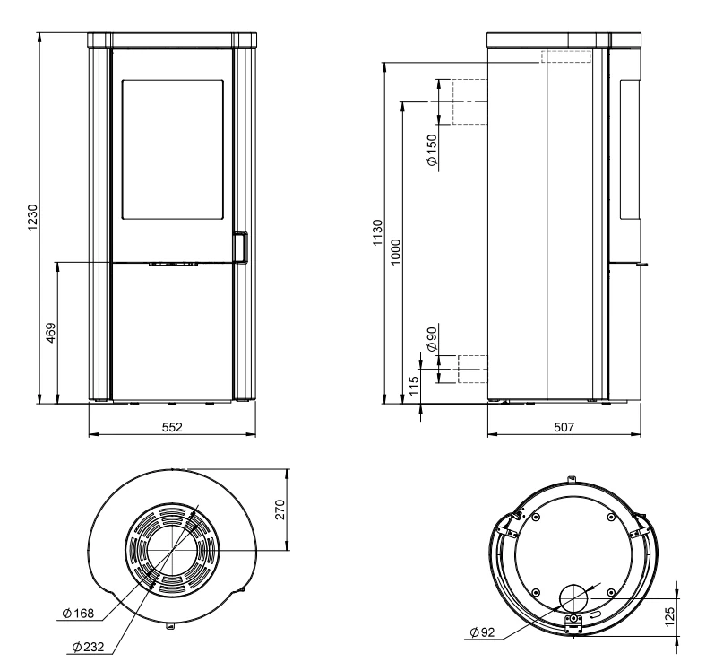 - samouzavírací dvířka, integrovaná zásuvka na popel a uživatelsky přívětivá rukojeť