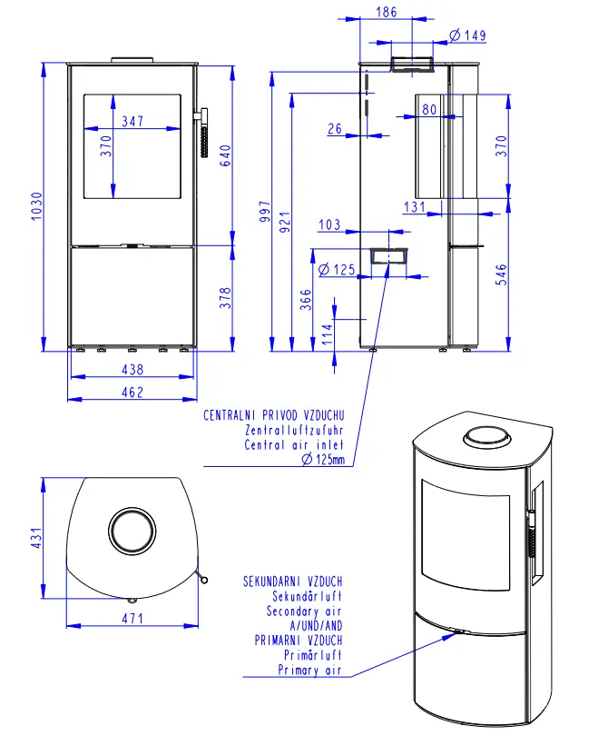 Dvouplášťová (konvekční) krbová kamna s třístranným prosklením a moderní spalovací komorou. Jaký je rozdíl mezi sáláním a konvekcí ![]()