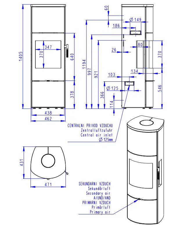 Dvouplášťová (konvekční) krbová kamna s třístranným prosklením a horní deskou z přírodního kamene. Model má možnost akumulačních kamenů v horní části kamen, kde uchovávají teplo i po vyhasnutí ohně. Jaký je rozdíl mezi sáláním a konvekcí ![]()
