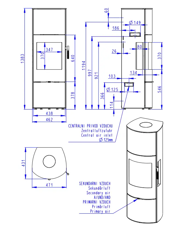 Dvouplášťová (konvekční) krbová kamna s třístranným prosklením a moderní spalovací komorou. Model má možnost akumulačních kamenů v horní části kamen, kde uchovávají teplo i po vyhasnutí ohně. Jaký je rozdíl mezi sáláním a konvekcí ![]()