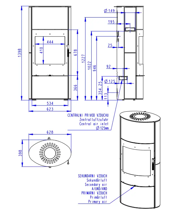 Dvouplášťová (konvekční) krbová kamna elegantního oválného designu s hladkou keramikou. Vysoká kamna s možností umístění akumulačních prvků do prostoru nad spalovací komorou. Touto „masou“ akumulačních prvků lze prodloužit sálání tepla z kamen až o 5,5 hodiny.