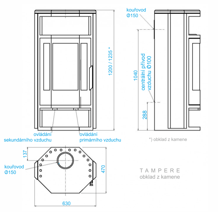 Dvouplášťová teplovzdušná (konvekční) kamna.
