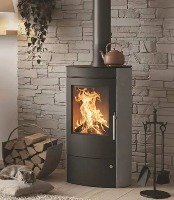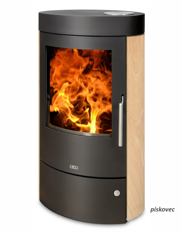 Dvouplášťová teplovzdušná (konvekční) kamna , také s obkladem z přírodního kamene mastku.