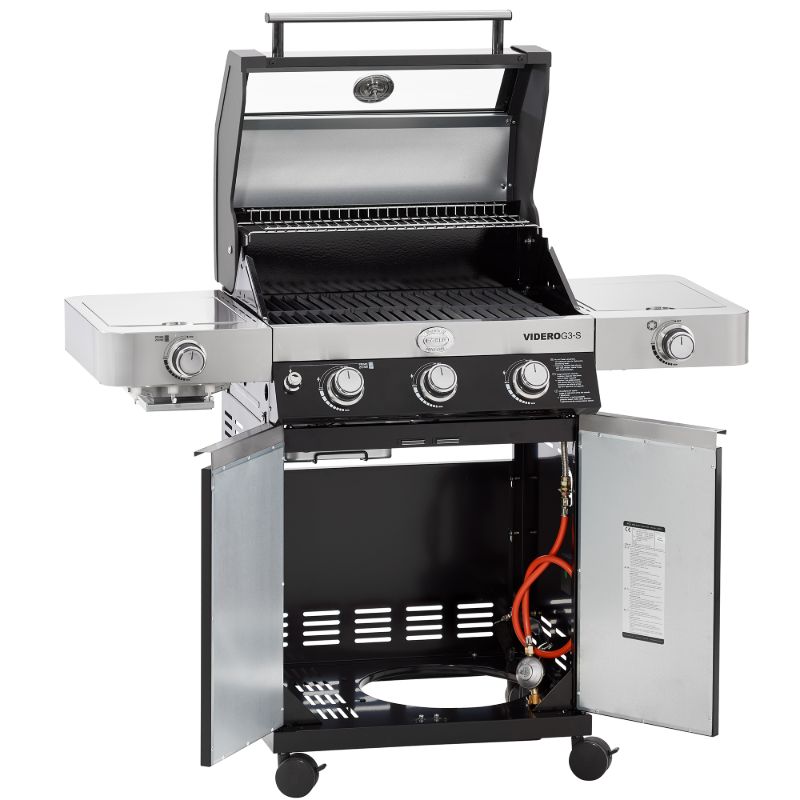 Plynový gril Rösle se skleněným víkem a se 3 nerezovými hořáky, Prime zónou a plotýnkou v postranním stolku se vyznačuje rychlým zapalováním a silnou energií hořáků, velkým teplotním rozsahem a rovnoměrným vytvářením tepla v kombinaci s čistým spalováním. Obsluha je pohodlná díky komfortní pracovní výšce, bočním úložným plochám a prostorné spodní skříňce se spoustou místa pro příslušenství.