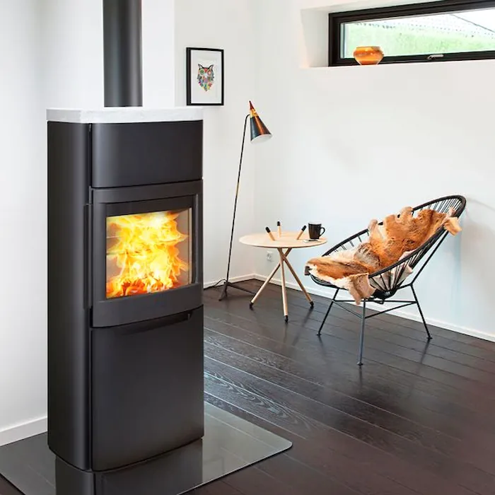 Dánská dvouplášťová konvekční kamna s možností akumulace. Regulace vzduchu je řízena pomocí zařízení WIKING® AutomaticTM.